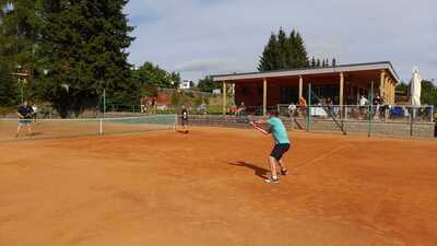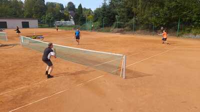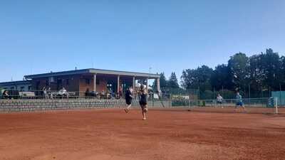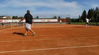 Los vytvořil naprostou většinu vyrovnaných dvojic, a tak jsme se mohli kochat velmi pěkným tenisem. Do seminifále hlavní soutěže se po poledni prokousaly v první polovině pavouku dvojice Šebesta–Kábrt J. a Hlávka–Jará a v té druhé Kábrt M.–Ryba a Prouza–Gerhardt. První semifinále nabídlo vyrovnaný tenis plný pěkných výměn. Nakonec rozhodla skvělá hra naší patnáctileté N. Jaré, která se rozhodla, že letos zaútočí na double (když už vyhrála pouťový turnaj) a spolu s Jirkou vyhráli 9:5. Druhé semifinále bylo jednoznačnou záležitostí naší mužské jedničky a velmi dobře hrajícího Jirky Prouzy, který se pro změnu rozhodl, že letos obhájí loňské vítězství (nakonec 9:2).