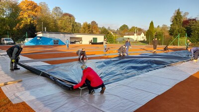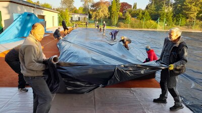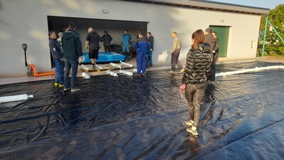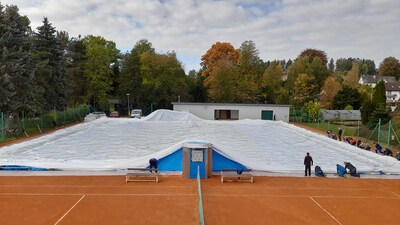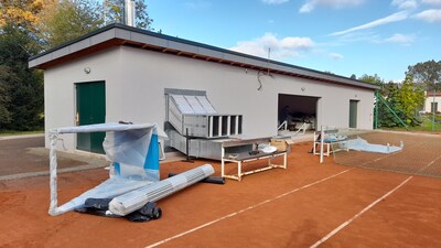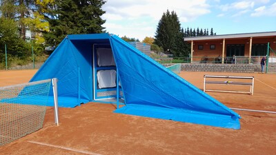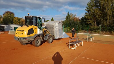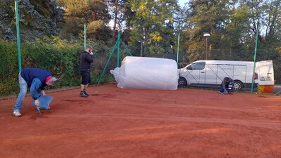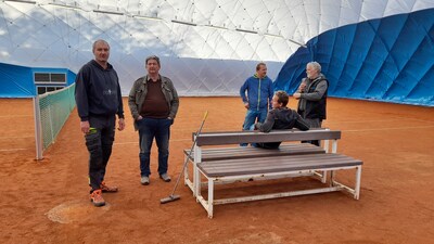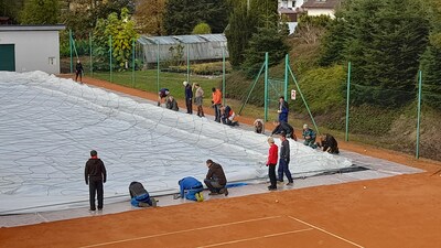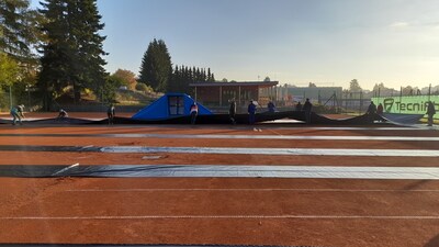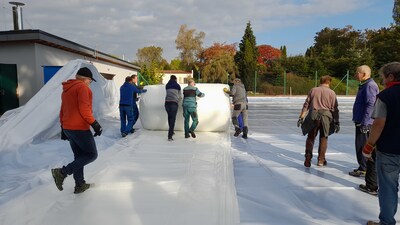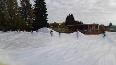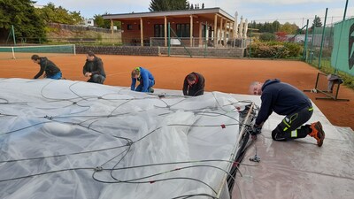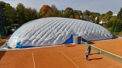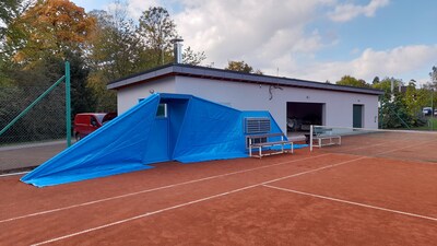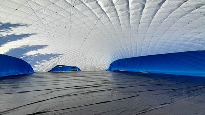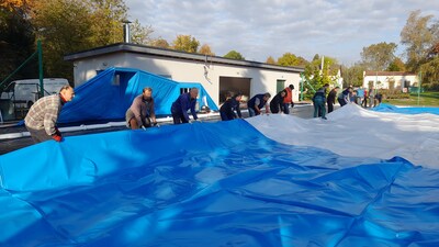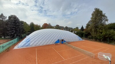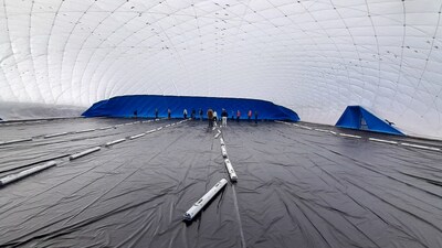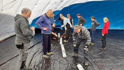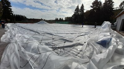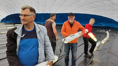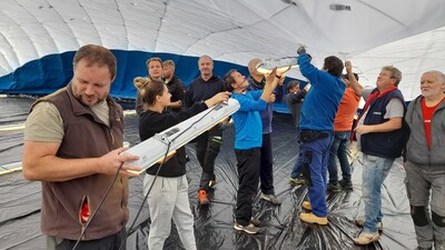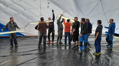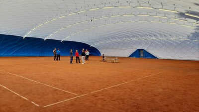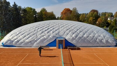 První instalace nafukovací haly