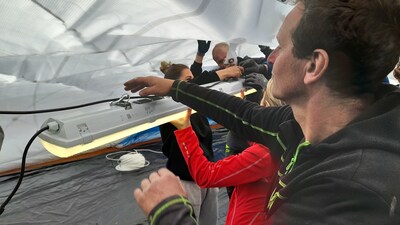 • První instalace nafukovací haly